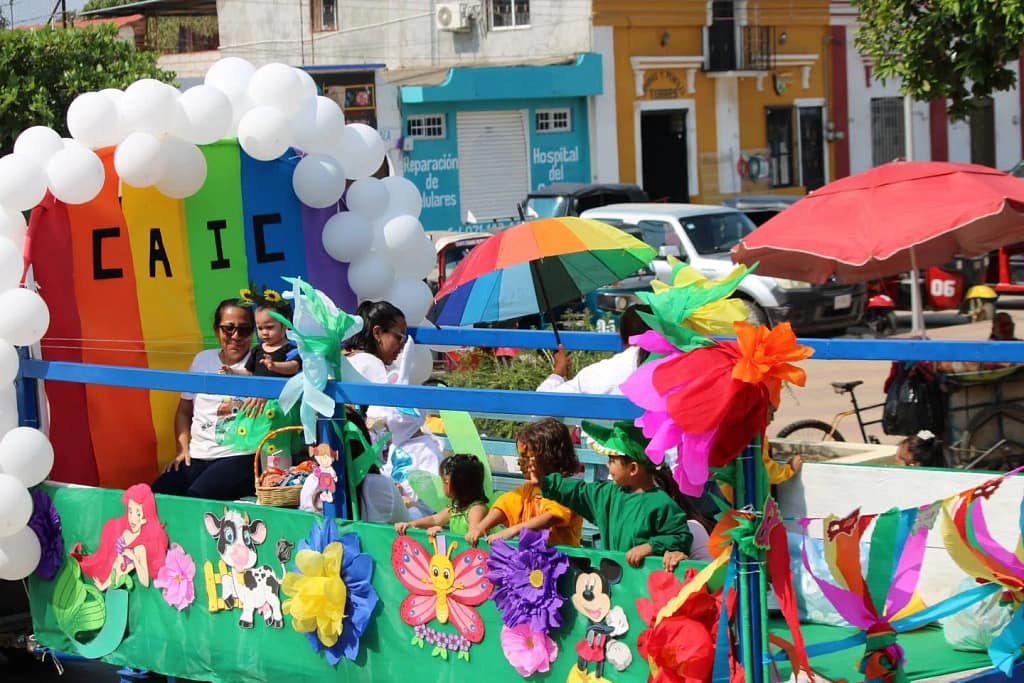 El festival destacó por la alegría y creatividad de las niñas y niños, quienes, con sus presentaciones, escenografías y coloridos disfraces inspirados en la naturaleza y la fantasía (como dragones, dinosaurios, aves, abejorros, osos y mariposas), dieron vida a una jornada llena de energía. Carros alegóricos, música y bailables complementaron esta celebración, generando un ambiente festivo ampliamente disfrutado por las familias asistentes.