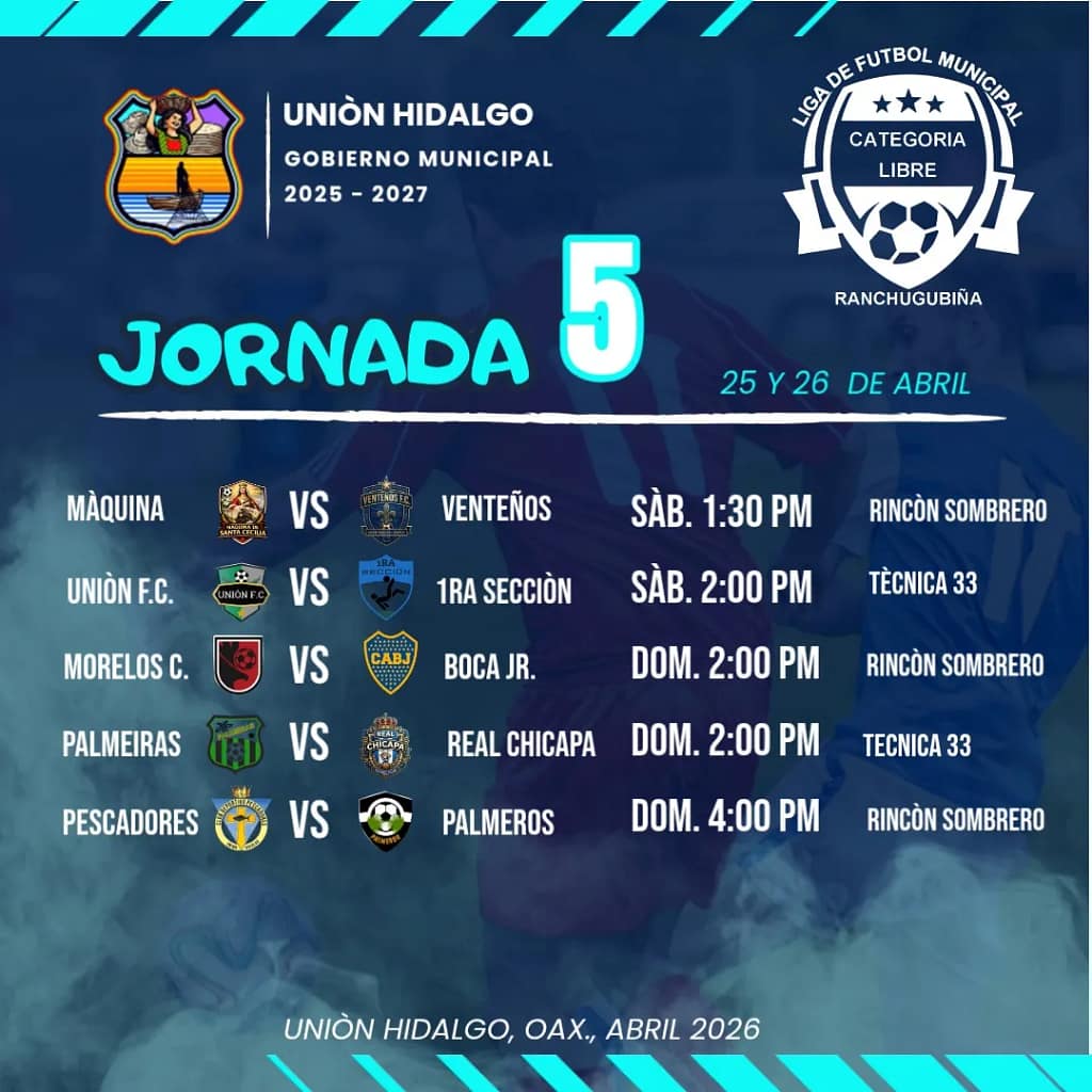 La Liga Municipal de Fútbol en su categoría libre continúa con gran intensidad, dando paso a la Jornada 5, donde los equipos buscarán sumar victorias y consolidar su camino dentro del torneo.