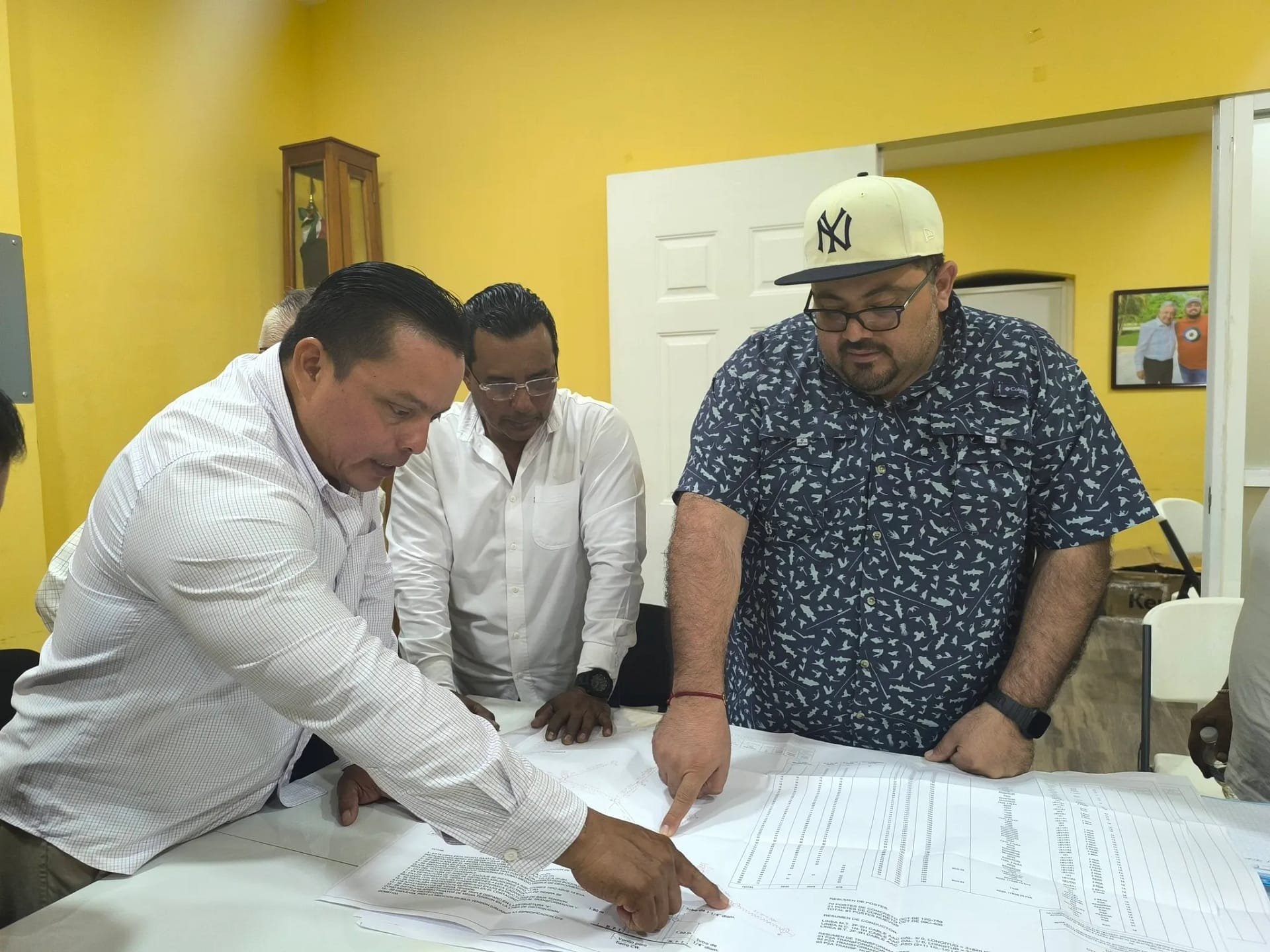 El Presidente Municipal, Profr. José Carlos López Alonso, sostuvo una reunión con el personal técnico encargado de la elaboración de los planos del proyecto para la introducción de energía eléctrica en Playa Unión. Se revisaron los detalles técnicos de esta importante obra, que tiene como objetivo mejorar las condiciones de vida y trabajo de las familias de la zona.